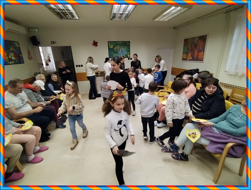 Učenici prvog razreda, članovi naše zadruge sa svojom učiteljicom Zdravkom Vidukom posjetili su Dom za stare „Sv. Frane“. Tom prilikom donijeli su poklone, crteže i lijepu riječ za korisnike doma. Djeca su sa radošću razgovarala sa starijim osobama, recitirala pjesme i uljepšala im dan. Posjeta je protekla u toploj i srdačnoj atmosferi, a učenici su naučili koliko je važno pokazivati pažnju, poštovanje i brigu prema starijima.