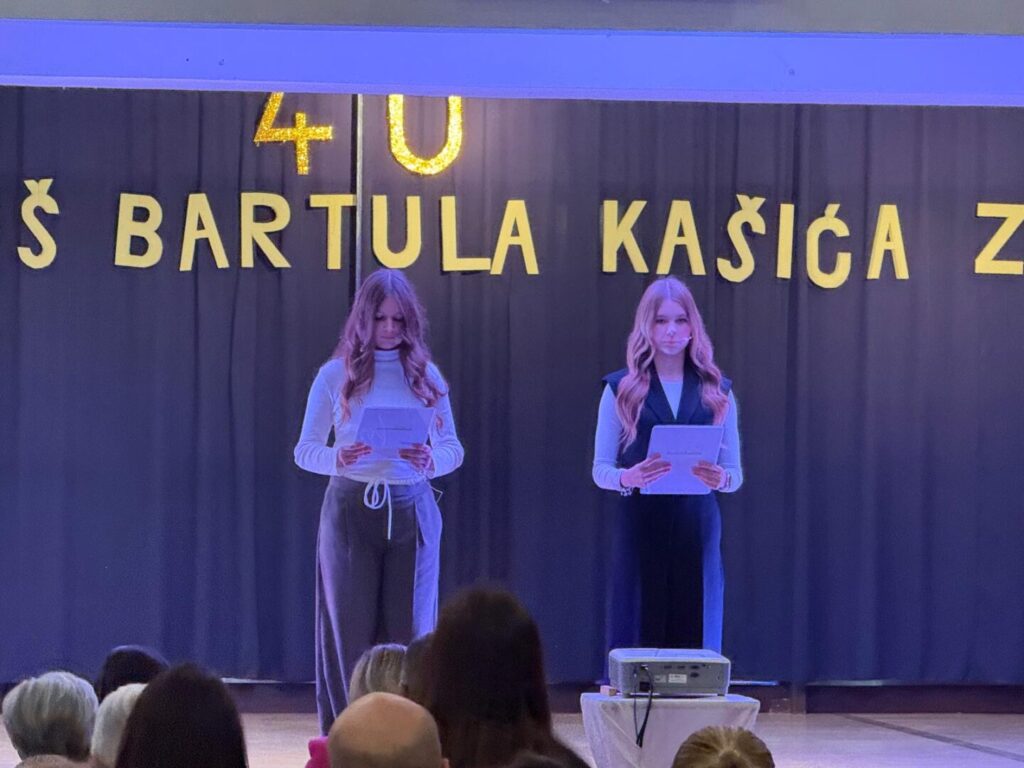 U srijedu 3. prosinca 2025. obilježili smo 40 godina od osnutka OŠ Bartula Kašića. Ovom smo se prigodom prisjetili naših umirovljenih i sadašnjih djelatnika, bivših i sadašnjih učenika i svih onih koji su gradili i još uvijek grade svojim iskustvom i znanje našu školu. Još puno sretnih i uspješnih godina!
